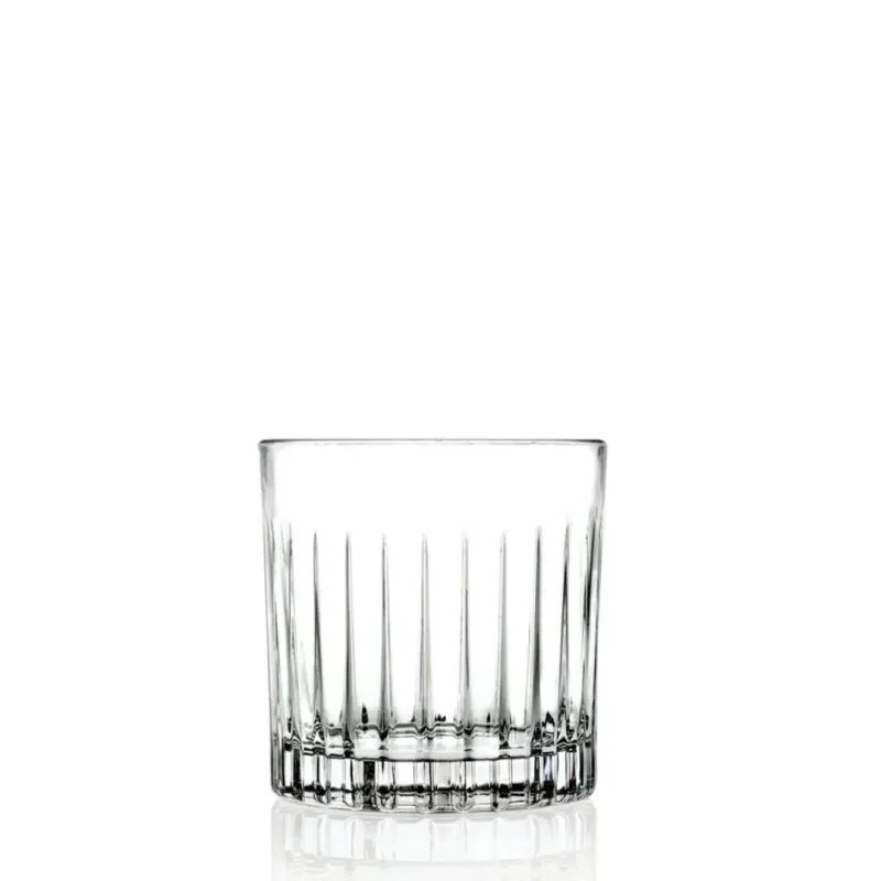 La Collezione Timeless presenta un bicchiere tumbler basso in luxion lavorato con una capacità di 36 cl, caratterizzato da un design vintage che aggiunge un tocco di eleganza al servizio bar.