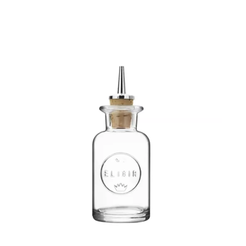 Bottiglietta per Bitters, della Linea Elixir del celebre marchio Bormioli, dotata di tappo versatore in sughero e plastica.