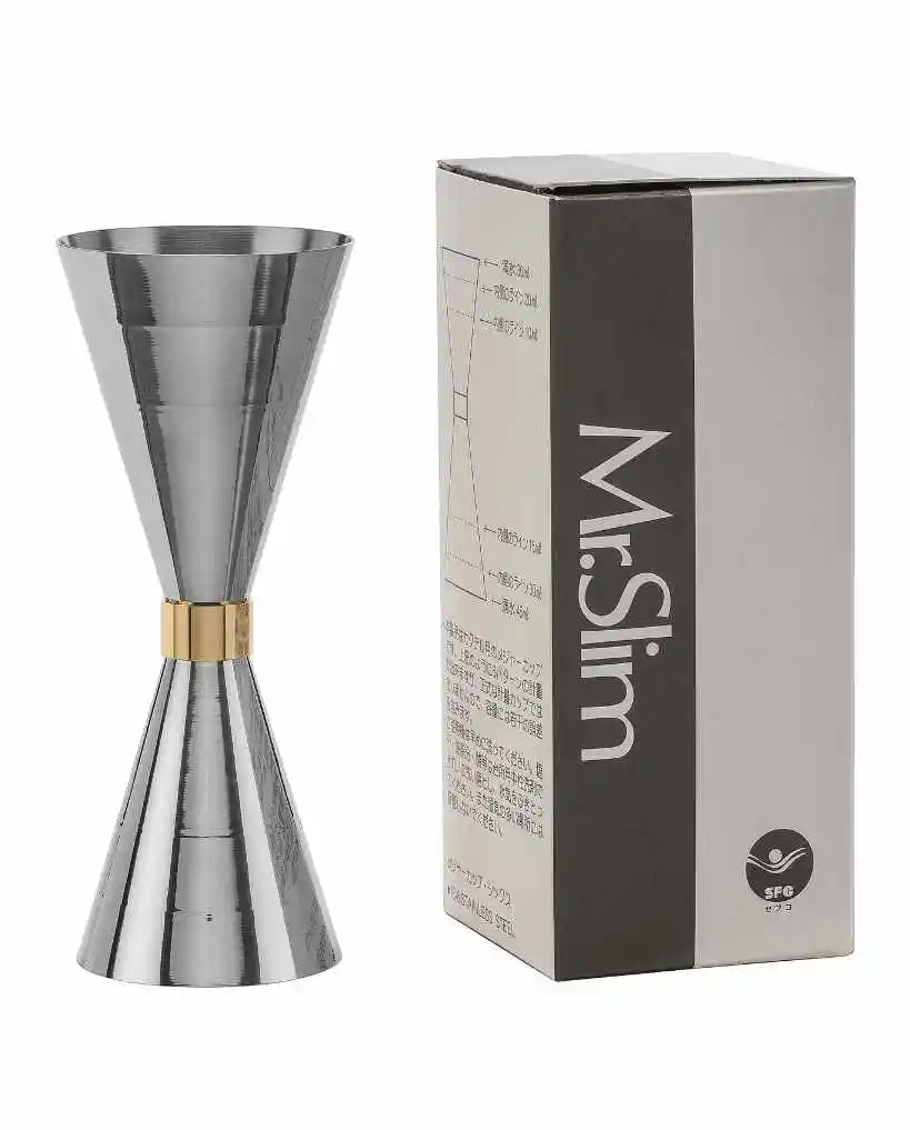 Mr.Slim nasce da un Bartender Giapponese Takahashi nei primi anni 2000, si tratta di un Jigger a cono stretto nel centro e largo ai bordi con un anellino dorato al centro. Un design unico, realizzato in Giappone dall'azienda NFC, che si occupa di componenti metalliche di piccole dimensioni.