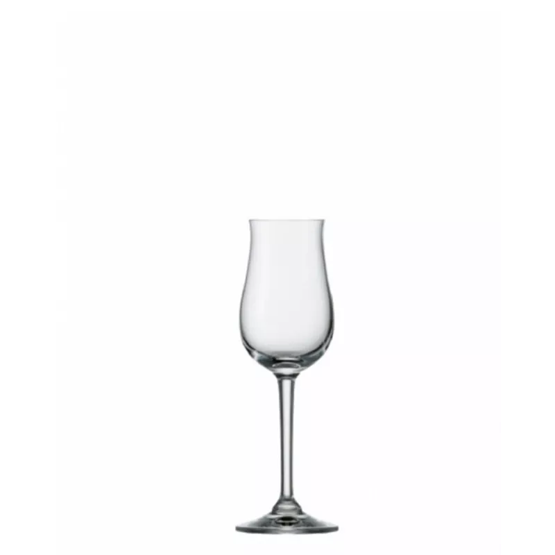 Calice in vetro del marchio Stolzle progettato appositamente per il servizio di distillati e grappe, con un design che presenta la tipica forma a tulipano per esaltare al meglio gli aromi del liquido contenuto.