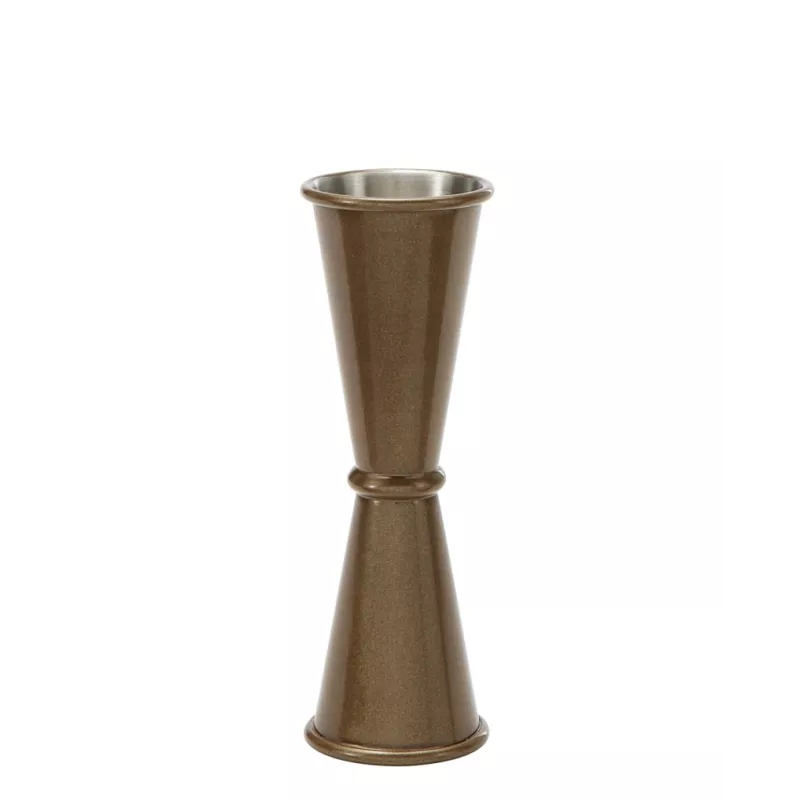 Jigger japanese realizzato in acciaio lucido, placcato esternamente di colore bronzo. Verniciatura ultra resistente a graffi ed abrasioni. Distribuito in esclusiva da ebarman.com.