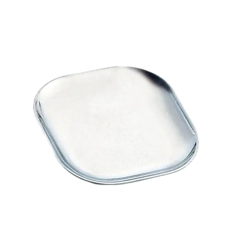 Elegante piattino in acciaio inox con forma quadrata e linee morbide.