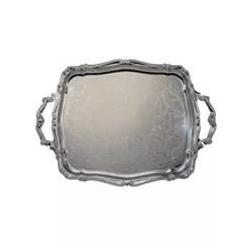 Elegante vassoio di forma rettangolare con maniglie, in stile barocco, damascato per servizio bar.